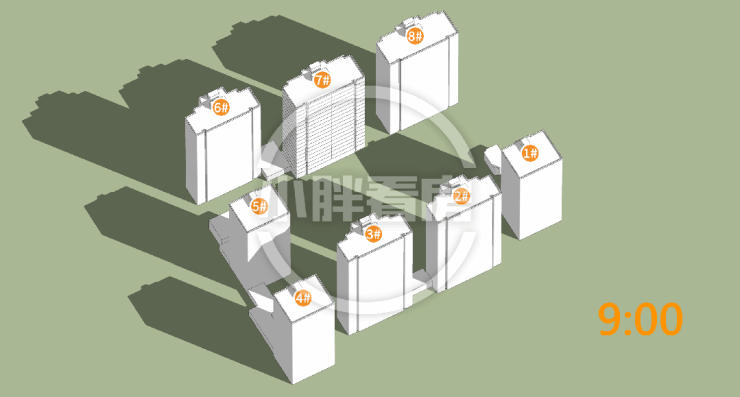 夏至(9-15时)在售楼栋日照时间和动图