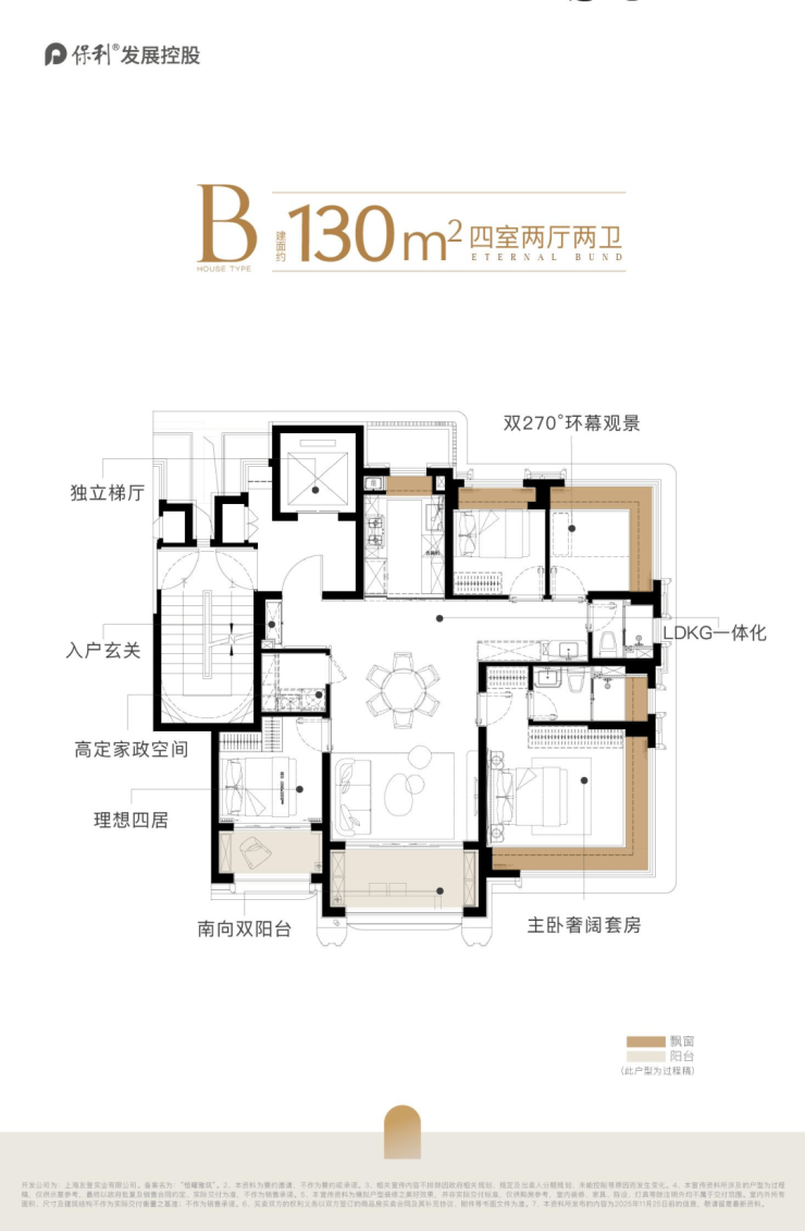 保利外滩曜建面约130㎡的实际使用率做到了约94%,双阳台+双约270°视野+一梯一户独立电梯厅+多飘窗。