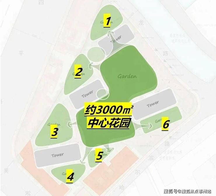 景观方面,「外滩瑞府」通过建筑楼体的偏转,形成了围合式的景观布局。由此,项目做出了约3000㎡尺度宏大,连续贯穿的核心中央花园,并利用楼栋布局与边界形成夹角,自然衍生出6个小型花园组团。