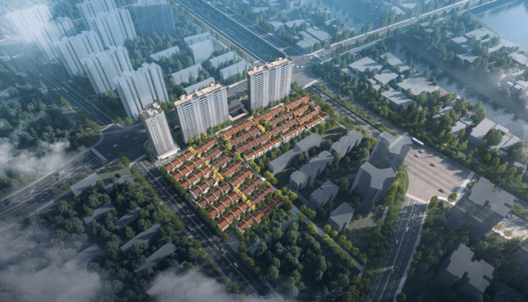 项目建设内容主要为3栋19-20F的高层,两栋为商品房,一栋为保障房或公租房。另外还有26栋2F的风貌别墅及配套设施组成。小区入口处设计了一座下沉庭院,可以说是一个规模合适的低密墅质社区。