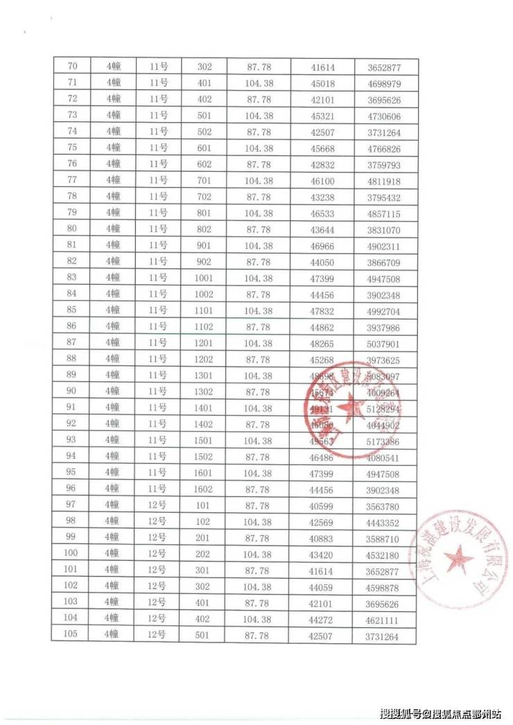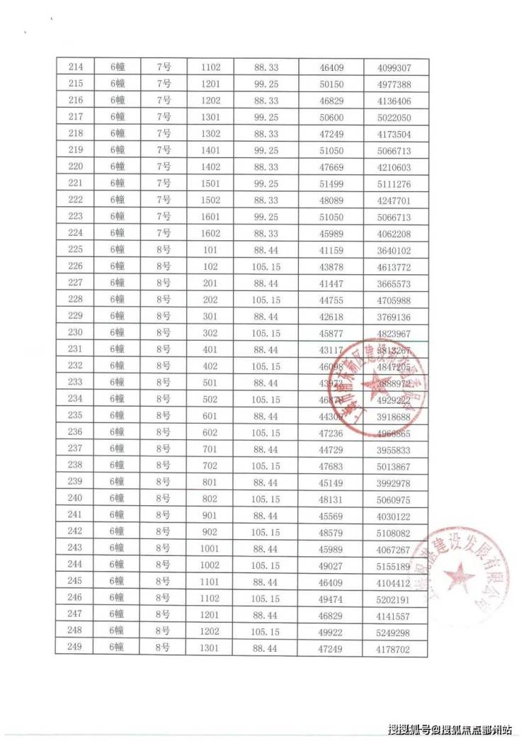 项目一房一价表