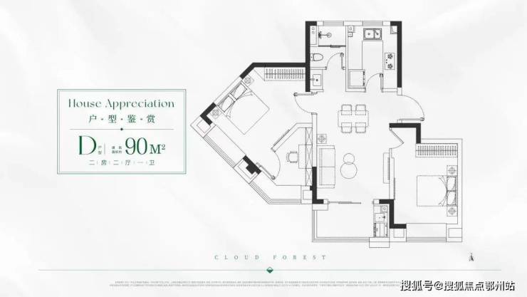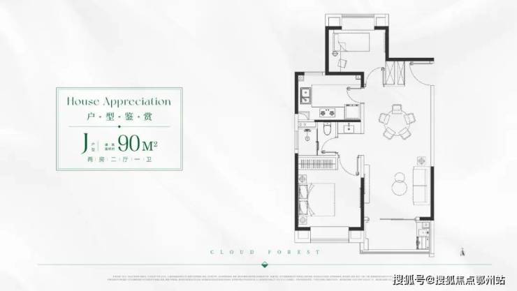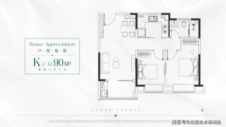 建面约90㎡2房1卫户型,对于预算有限但是想要入住黄浦江沿岸、入住三轨交TOD,享受前滩繁华的购房者来说,这个户型非常值得一看。