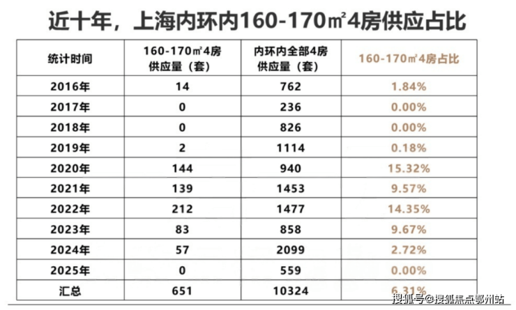 我们以170㎡为界,梳理了近十年内环内四房户型的供应数据,结果也不意外: