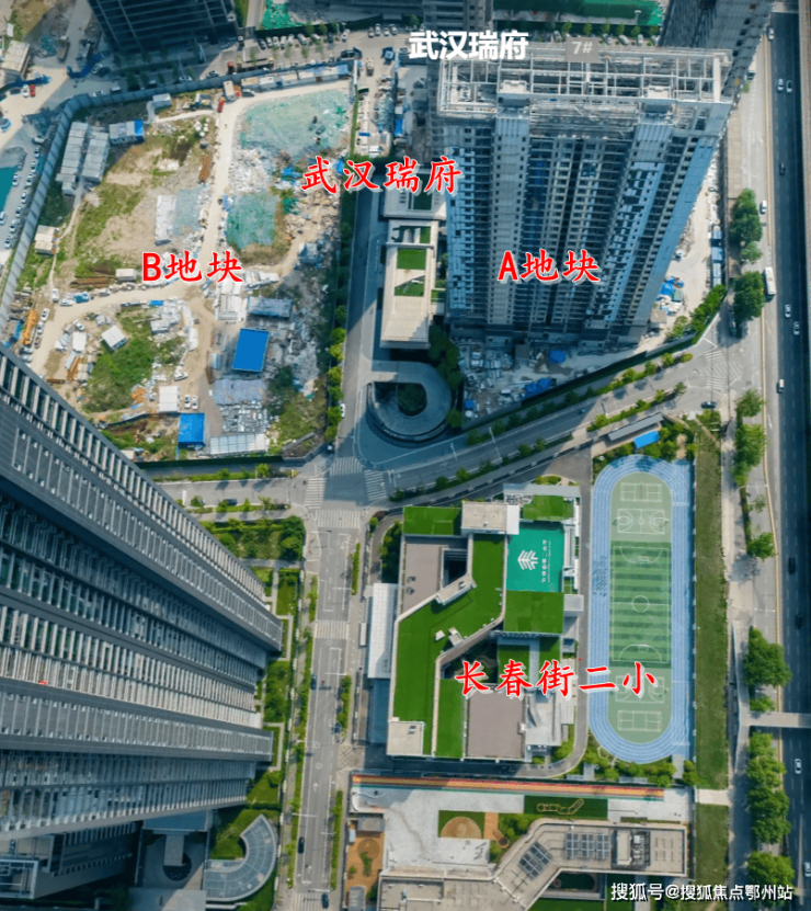 武汉瑞府占地面积约5.3万方,总建面约21.5万方,容积率4.0,共991户,住宅机动车停车位1859个,车位比约1:1.87,包含9栋住宅楼,约3205㎡商业,以及1所幼儿园。项目共三个地块,有空中连廊将其连在一起。