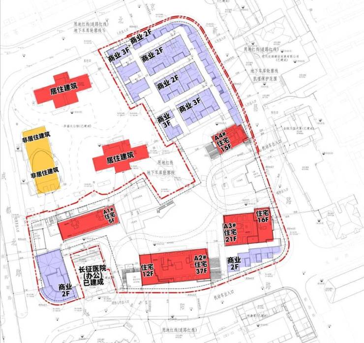 地块为住宅和商业混合用地,住宅方面,项目拟建A1#5层住宅,A2#12层/37层住宅,A3#21层/16层住宅,A4#15层住宅。