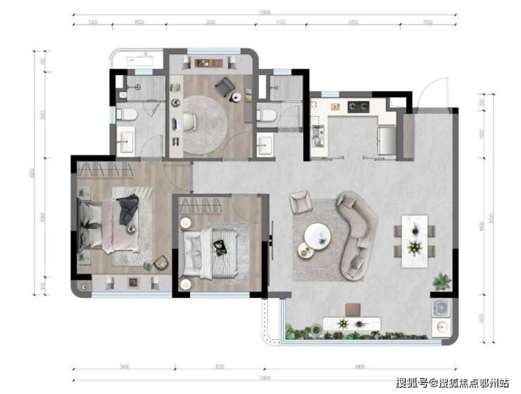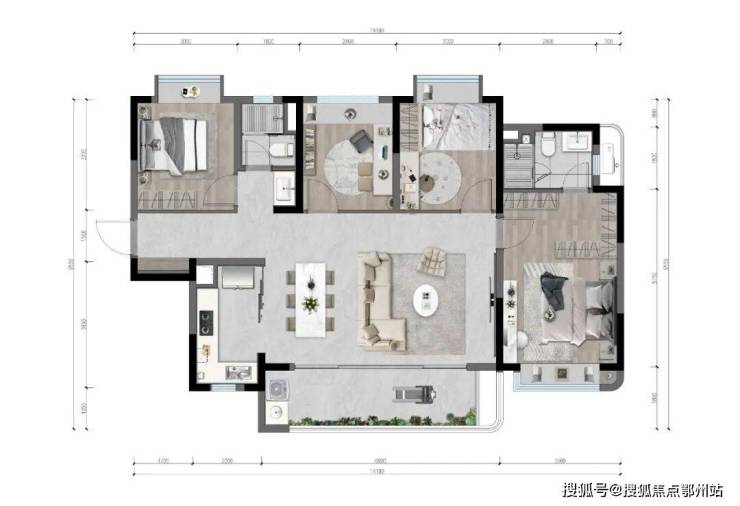 合理的动静分区,主卧位于内侧,让业主日常休憩不受影响。卧室 进深均超3米,面积超9㎡,让每间卧室都享受独属于自己的休息、收纳空间。