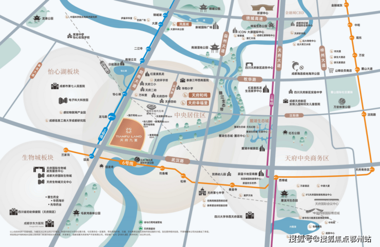 板块北接金融城,西接怡心湖,东接天府中央商务区、科学城,既有成熟的配套,又有天然河湾-锦江,是整个天府新区「首熟区」。