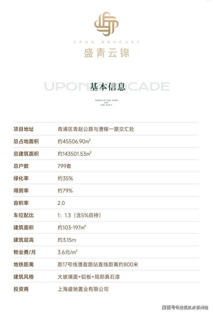 青浦区 青浦新城·地铁17号线旁【盛青云锦】建面约103-197㎡3-4房!均价约44619元/㎡!