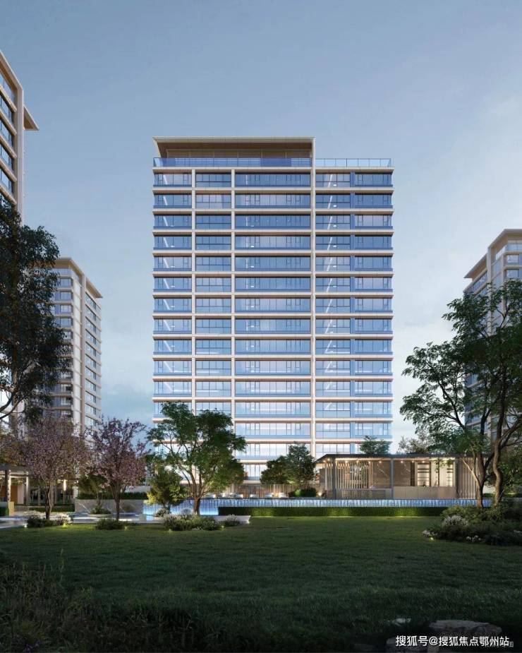 【建筑风格】 现代简约风,外立面采用大面积玻璃加铝板,打造非对称L型立面,材质造价更高,抗腐蚀性程度更高。