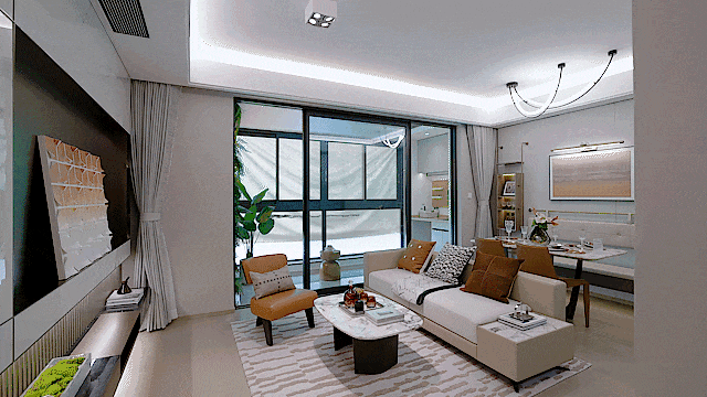 客餐厅相连的大横厅,匹配同尺度超大面宽阳台 ,室内阳光满溢。