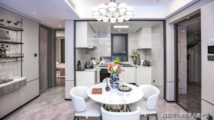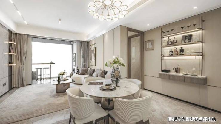 得益于飞机户型,项目室内无过道,几无浪费面积,餐厅位置能从容放置圆桌,妥妥改善级尺度的餐厅。