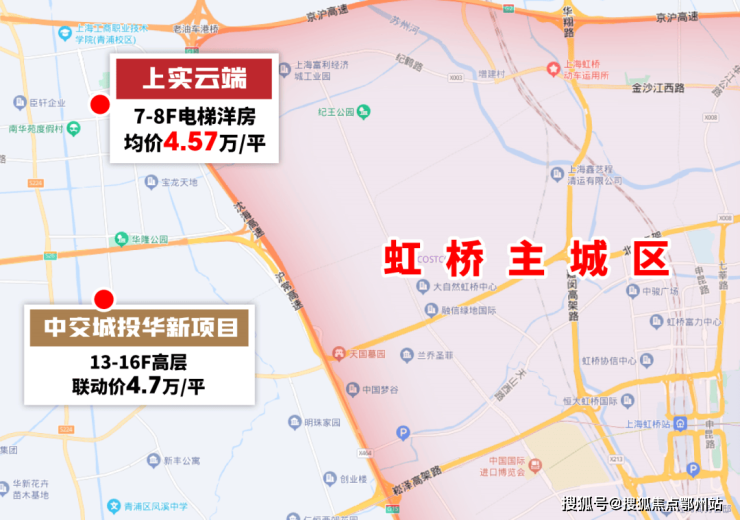 上实云端位于华新板块核心,与虹桥前湾地区核心直线距离不过2公里,与虹桥核心区直线距离不过8公里,可谓是近水楼台先得月。