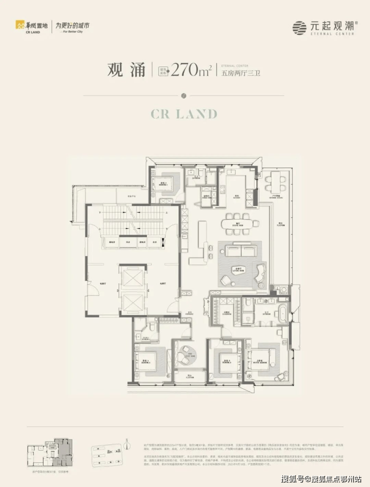 建面约270方五房两厅三卫: