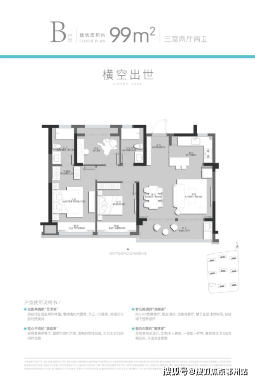 总价239万元建面约99㎡装标3000元/㎡,配置包含全屋中央空调、新风系统等。小区体量不大,规划9栋高层,共918户,主力户型建面有99-121方,