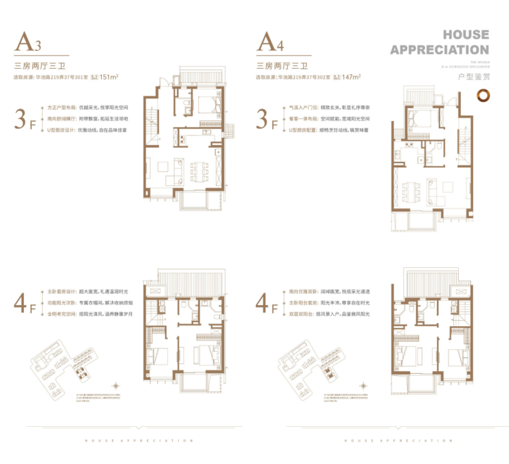上叠户型,共有三个主力户型,建面约155㎡、151㎡