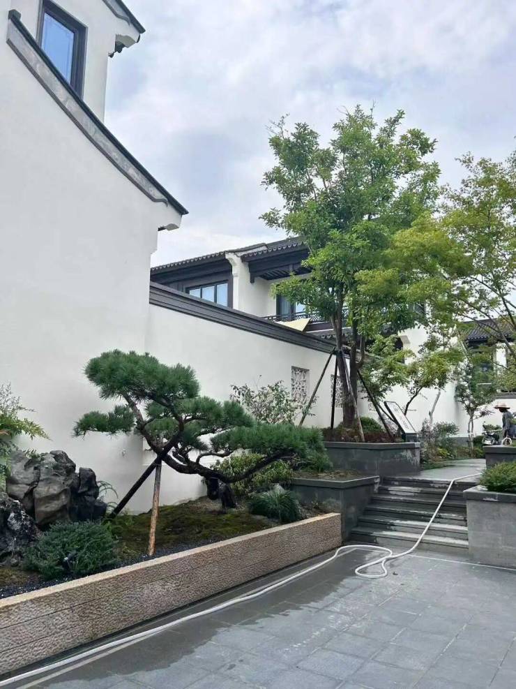 景观营造:六重归家礼序(入、道、芯、弄、园、院),甄选四时花木,春樱、夏榴、秋桂、冬梅形成“四季之美”,庭院与白墙黛瓦、飞檐翘角共同勾勒江南意境。
