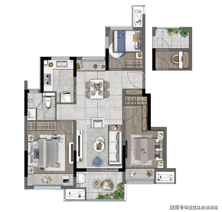颠覆性品质爆款三房 ,充分考虑空间利用,巧妙打造,整个空间没有浪费一丝面积。每一个房间都物尽其用,让阳光铺满每一寸生活区。