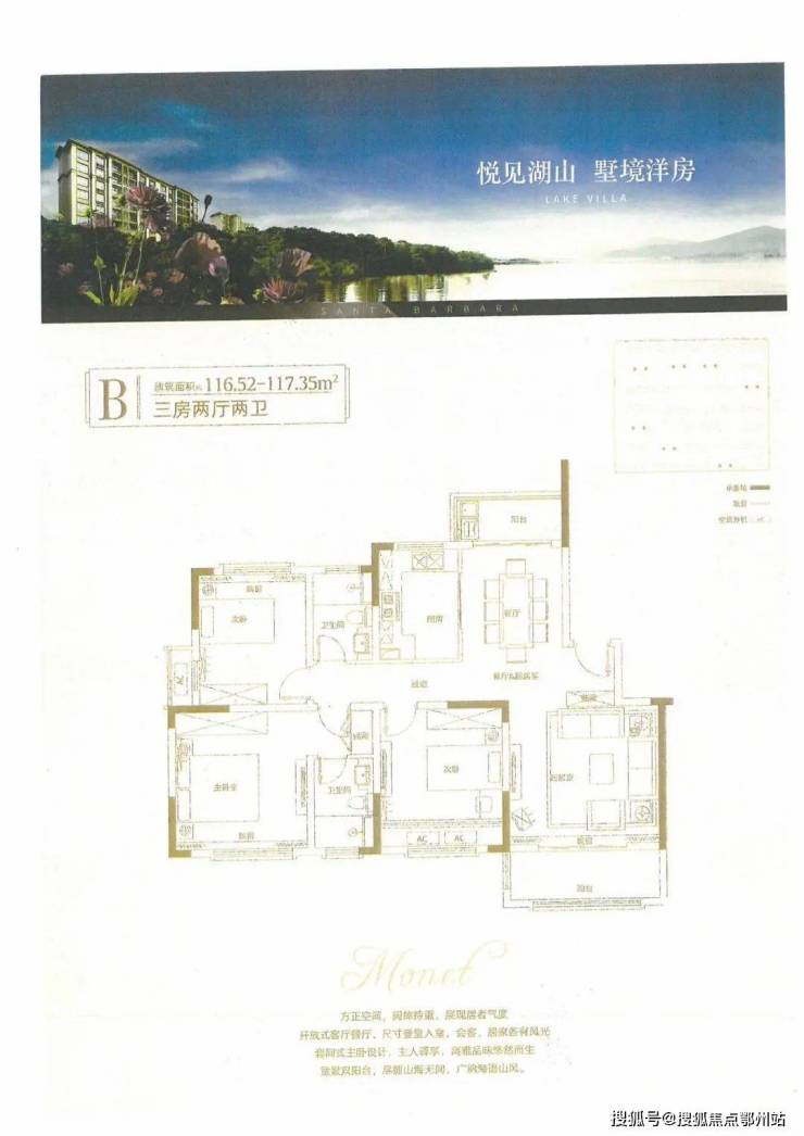 户型解析:117㎡三房两厅两卫设计,开放式餐客厅,套房式主卧设计,宽景双阳台。