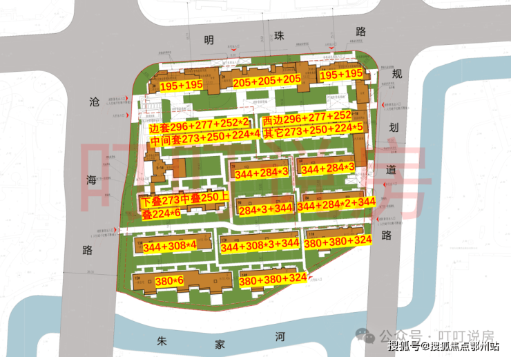高层2幢共14层,均为195㎡;洋房9层两梯三户,均为205㎡。