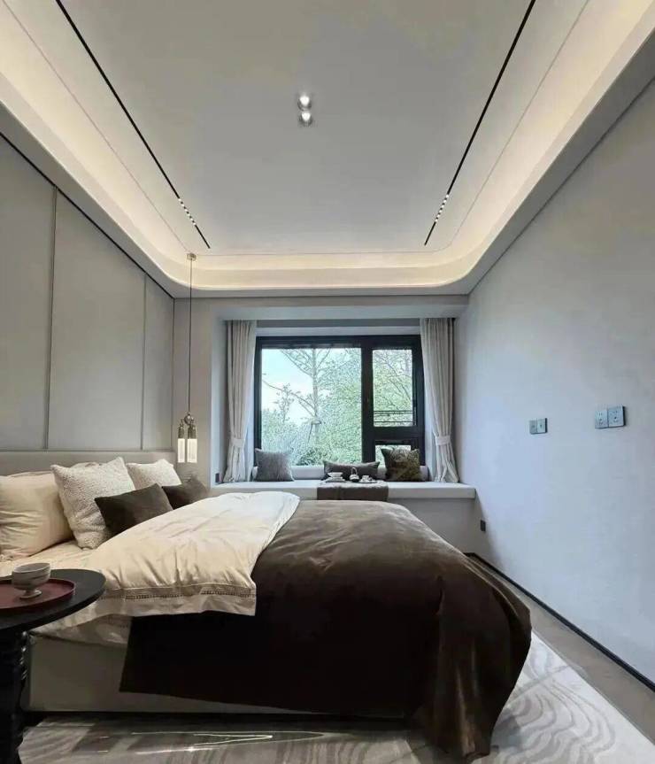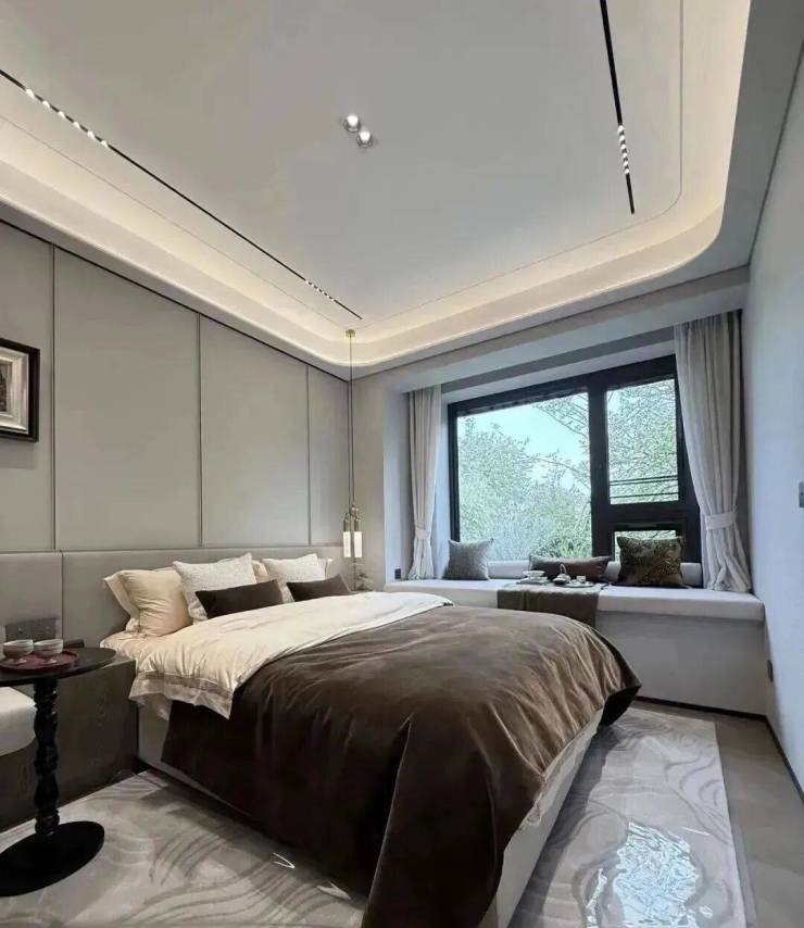 其中主卧的270°转角飘窗就有约5.7m²,通过与外立面的结合,直接做了梳妆台和储物柜,拓展了飘窗的实用性。