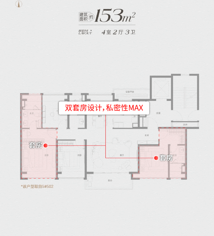另外153户型是类一体一户,有私密的入户空间可使用,隐私性和空间利用率超高。