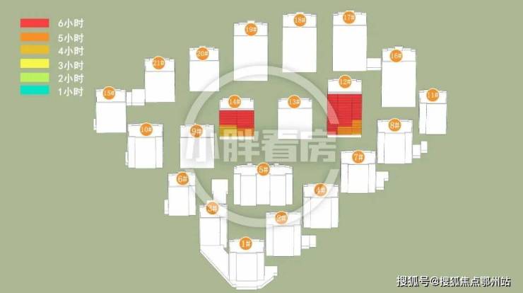 和萃揽悦园的分析结果是这样:计算已考虑周边所有建筑的影响,结果表明由于周边规划尚未公示,暂且不建,楼栋仅受地块内部影响。(说明:本文日照数据基于公示规划图纸文件,使用专业制作工具完成,仅供参考)