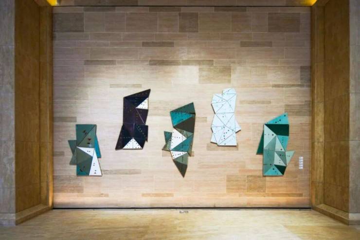 此外,相较于常规顶豪中奢石的简单铺贴,绿城黄浦ONE注重石材的艺术化设计——通过精心设计的拼花设计与错落有致的造型组合,赋予石材墙面艺术表现力;