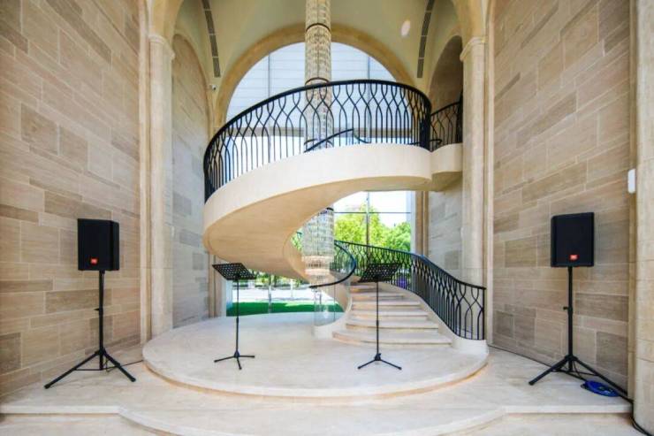 例如入户玄关铺设有“石材皇后”鱼肚印象,这种级别的奢石在很多顶豪项目中通常仅作局部镶嵌