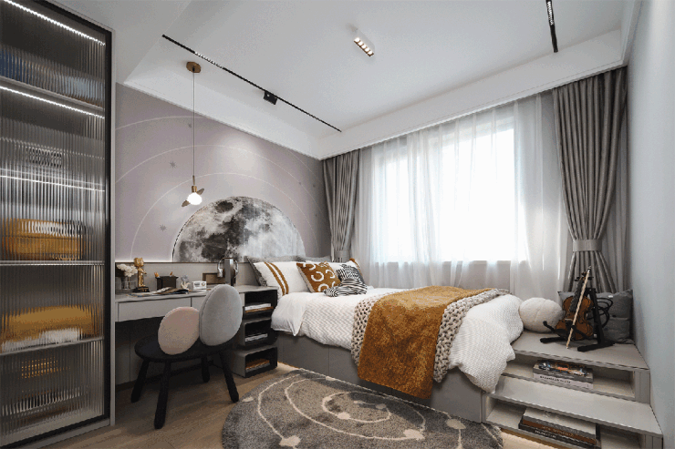 值得一提的是, 大四房设计贯穿二人世界、多孩家庭到三代同堂的需求;四室分布于两个区域,南向阳光次卧可作为老人房使用,让父母享受专属静谧时光;其余三室近邻,方便亲子间的互动与照料; 套房主卧配备独卫,起居更加私密从容。