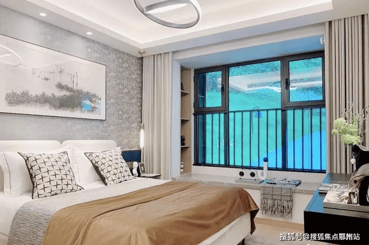 客厅连接的阳台在实际使用过程中也有许多可变性,它可以是小茶室或书房,是全家人的休闲区和交流区,或者设置成观景区,一览窗外自然美景。