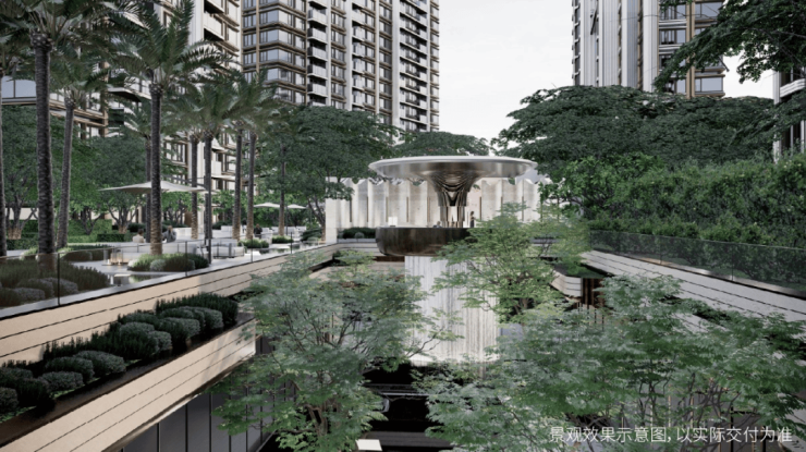 ②酒店式高奢门头 。用 雕塑体块、温润弧面和雅致线条 ,营造具有艺术格调的归家仪式感,每次回家都是度假的松弛享受。