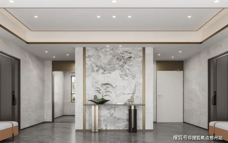全砼工艺外墙,演绎颜质合一的立面美学;高品质瓷砖、金属线条与岩板,匠造精装双入户大堂;双色环氧地坪漆、铝方通吊顶,彰显尊驾风度