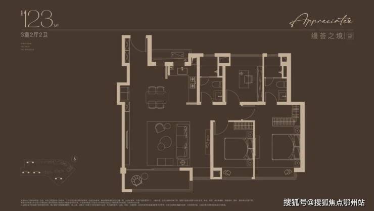 建面约123㎡3房户型,户型方正,三口之家的改善进阶之选!巧妙预留X空间,既可成为客厅空间的延伸,也可独立成室,实现更多功能想象。约12.5米南向面宽,搭配270°宽景阳台,窗外美景一览无余。