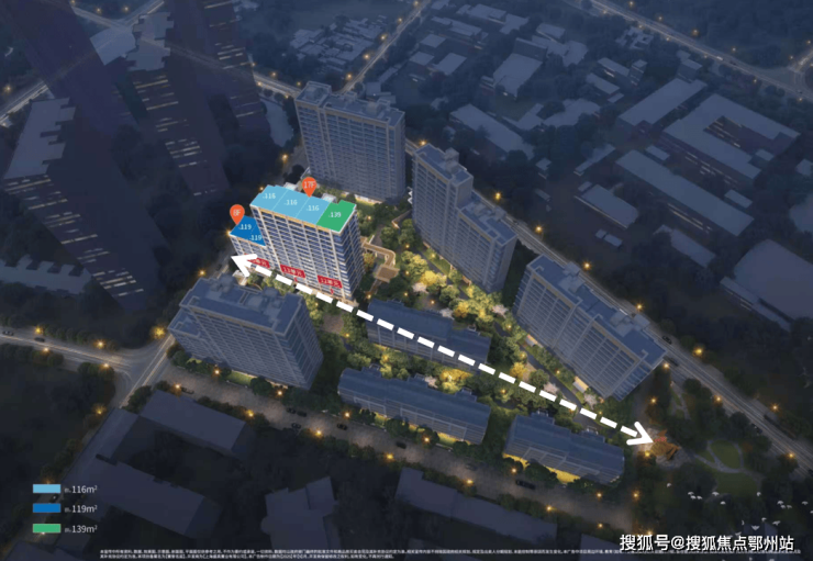 中间套G户型119㎡三室两厅两卫,单价均价约11.40万/㎡,总价均价约1316万。