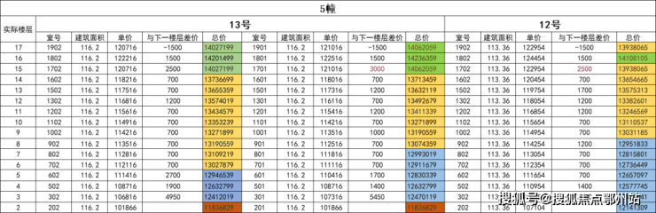 东边套139㎡户型的定价逻辑则有所不同,各楼层之间存在更为明显的价格差异。