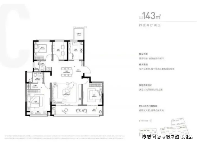 约143㎡四房之境,约12.3m南向三面宽 ,铺陈阳光与清风的偏爱;约8.3㎡开间的贯通式观景阳台,是家延伸向自然的取景框;主卧套房,衣帽间与独立卫浴自成天地;超3m进深U型厨房与独立玄关,将从容收纳于细节处尽显。每一寸,皆为仁恒对丰盛生活的精妙注解。