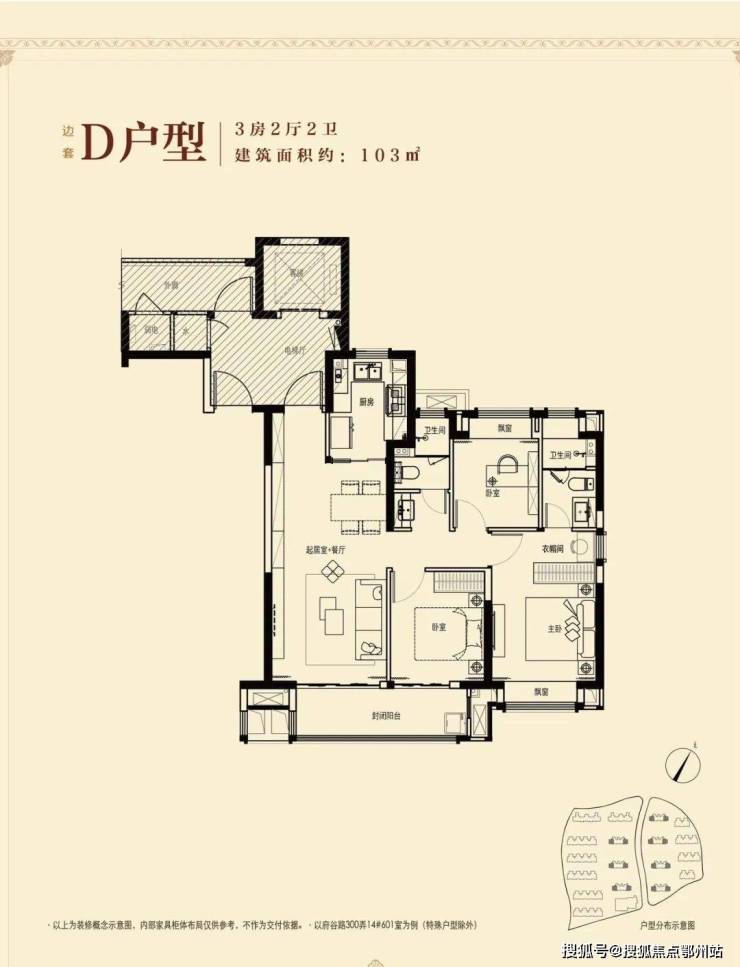 不得不说,这个建面约103㎡3房2厅2卫,能满足业主从二人世界到三口之家,再到二胎家庭的全生命周期需求。