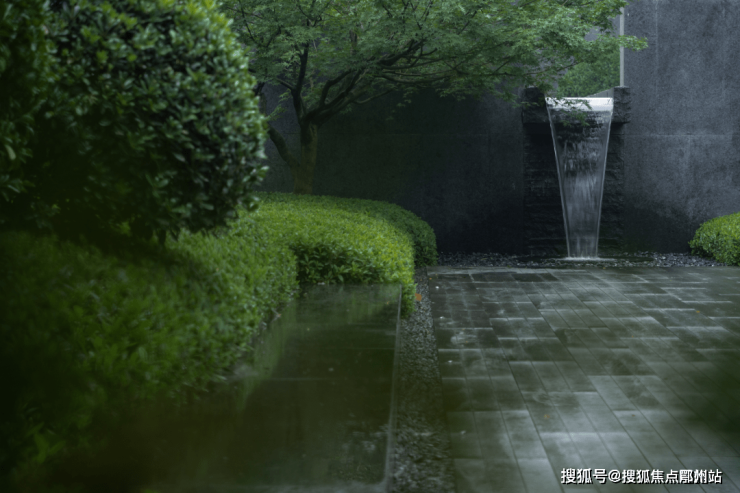 对景的水墙此时正水声潺潺,“寻声暗问弹者谁?”愿拜访者寻声而来,我们利用其听觉的感官浸染,与天际线相互呼应的密林枝头,