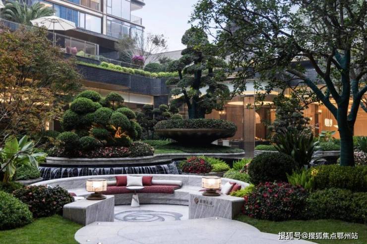 让小胖印象最为深刻的是那个 下沉式庭院:树木都是非常浓密的那种,一看就“很贵”,而且几乎每一棵都有“专属花盆”,修剪的层层叠叠。