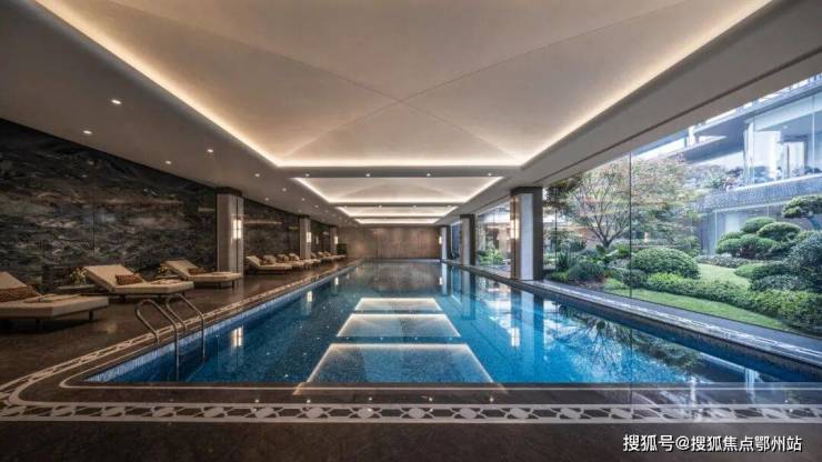 从恒温泳池的落窗往外看这些树,就像是一个个精致的“巨型盆栽”。