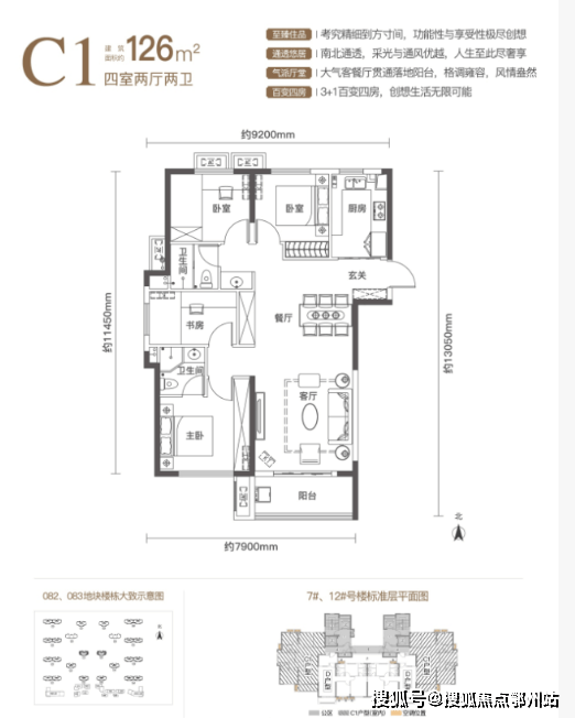7号楼户型图:C1户型126平4室2厅2卫