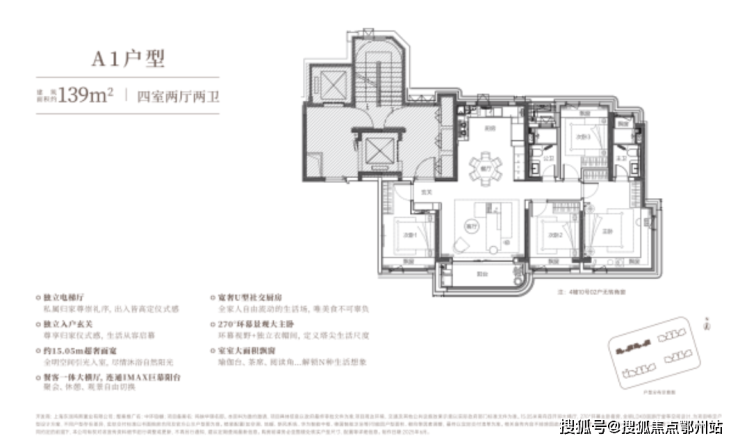 建面约 139 ㎡稀贵 4房,总价 约 1000万级 起