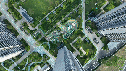 让钢筋水泥为花草树木留出空间,在园区内 打造九大宅间花园,错落分布于各楼宇之间,根据不同的主题布局不同的绿植。
