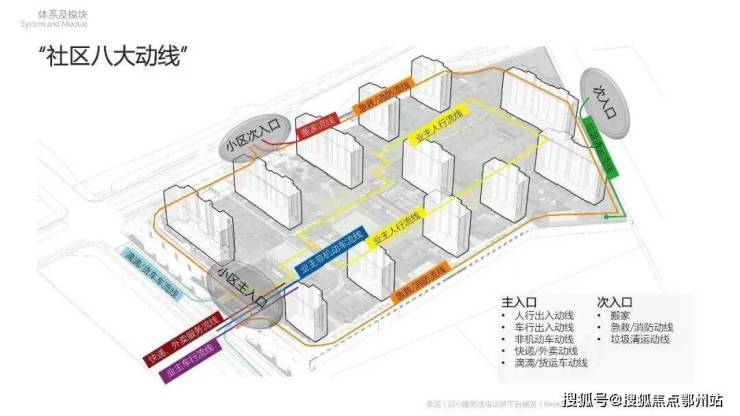 将社区看作一个 各功能场景有机串联的整体,针对不同需求的人行归家以及车行归家模块进行细化,通过梳理轨迹,串联起多个功能模块。