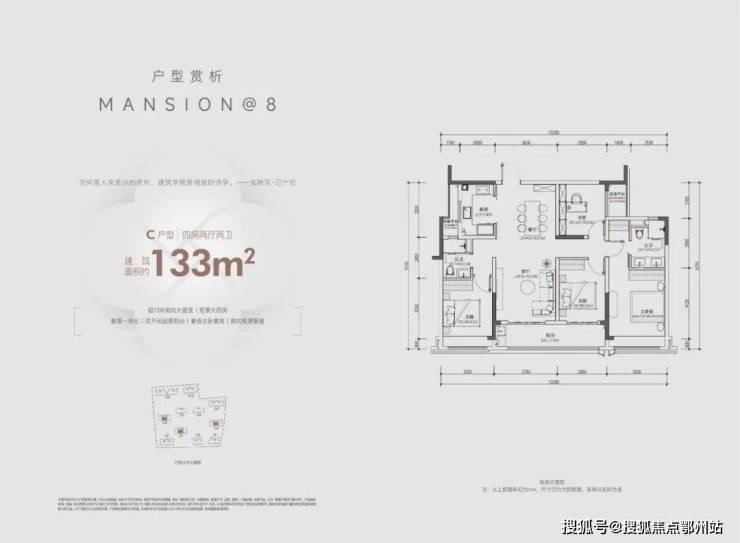 建面约135方边套户型,在空间设计上,升级户型灵动性和社交空间最大化,精心布局入户玄关,近40方的光幕大横厅、主卧星级套房、全景飘窗、约4.3米面宽的厨房等空间系统,完全是以豪宅的尺度奢享不同阶段的生活。