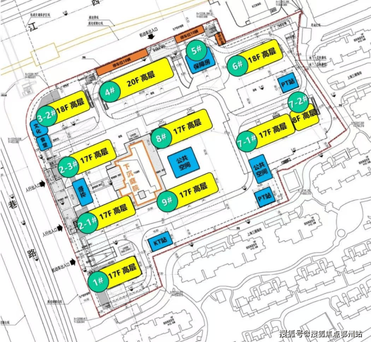 地块占地约3.46万方,容积率2.2,根据设计方案显示,项目拟建8幢17-20层的高层,1幢8层住宅,以及1幢保障房;