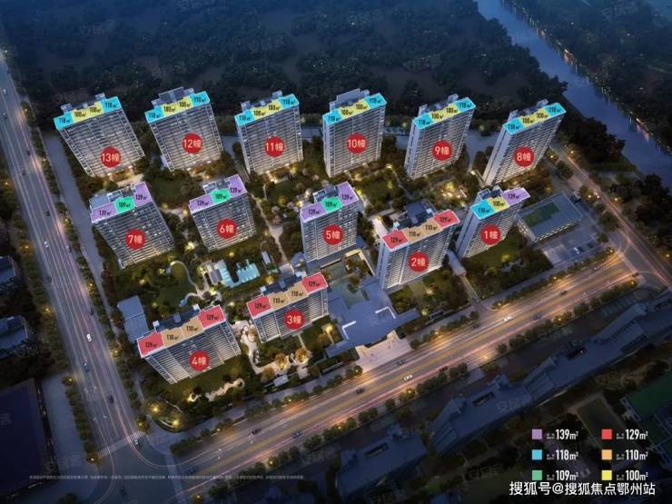 项目建筑面积13.57万平米,占地面积4.15万平米,容积率为2.40,规划821套房源,13幢住宅,分别为1幢13F、1幢16F、2幢17F、9幢18F。