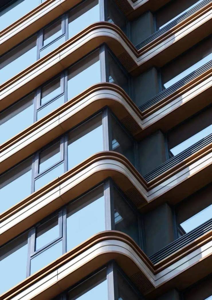 类似苹果手机的弧面设计,让建筑以更加优雅的姿态立于天际线种,轻盈中带着律动,呈现出鼎级大宅的超现代感。