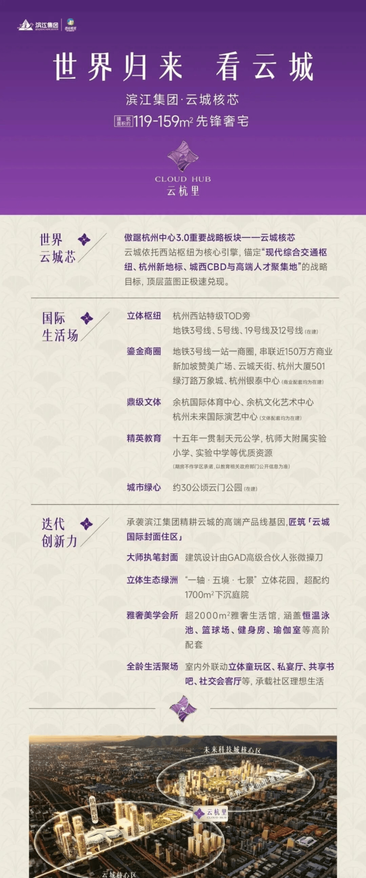 项目择址杭州第三中心—云城核芯,落位云城“华丽1平方公里”的中心点,坐拥西站枢纽TOD、云城天街、三地铁(3号线、12号线、19号线),揽一城繁华与磅礴风光。