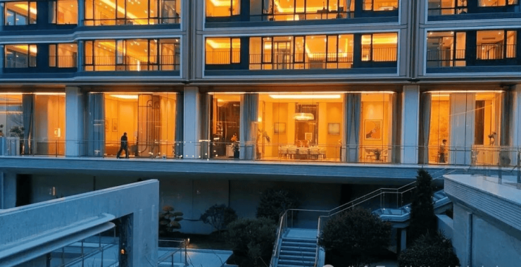 ✦外立面融入弧线转角元素,搭配Low-E中空玻璃幕墙